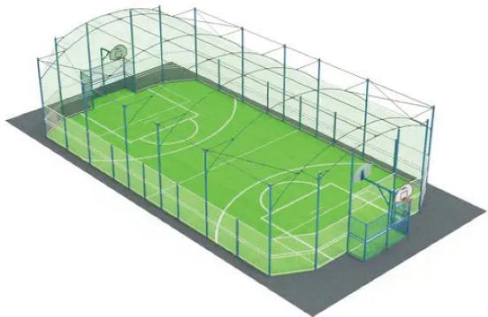 Tutte le aree saranno pavimentate con finitura continua policroma in resina antisdrucciolo. L’area da gioco sarà segnata da un sistema di ritti metallici, ognuno dotato di giusto plinto, con apposita rete antisfondamento sia laterale sia di copertura. L’impianto godrà di varchi predisposti con apposito serramento e sarà dotata di tutti i servizi ed attrezzature necessarie alla pratica dei vari sport di cui sopra.