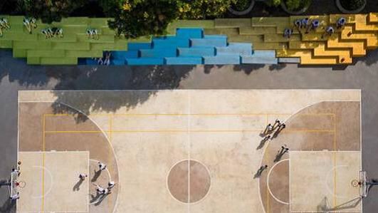 Al fine d’avvicinare e rendere visibile il recuperato polo di aggregazione si ipotizza di utilizzare una sorta di “voliera” come perimetrazione spaziale dell’area di gioco. La pavimentazione preesistente sarà pulita con asportazione di ogni residuo e sarà rifatta con un sistema multistrato ad elevata elasticità a base di resine acriliche in dispersione acquosa con tappetino in gomma granulare per campi multisport outdoor.